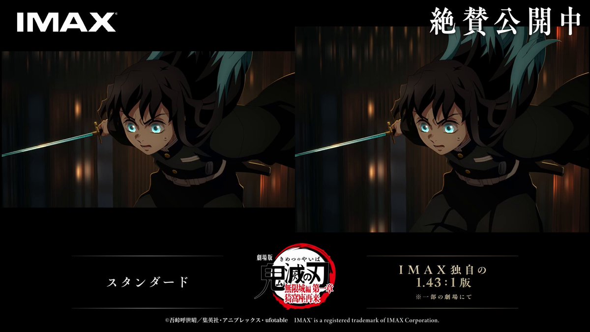 Demon Slayer: Mugen Train is receiving a special IMAX screening at select theaters! This tweet announces the screening at Grand Cinema Sunshine Ikebukuro and 109 Cinemas Osaka Expo City, highlighting the expanded vertical image range. Check out the details and experience the movie in a new way.