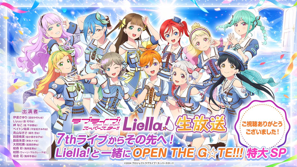 Relive the excitement of the Love Live! Superstar!! Liella! live broadcast! This tweet announces the broadcast’s conclusion and provides details about the archive release on Bandai Channel. Fans can revisit the performance and enjoy the special SP content. Don’t miss out on the archive!