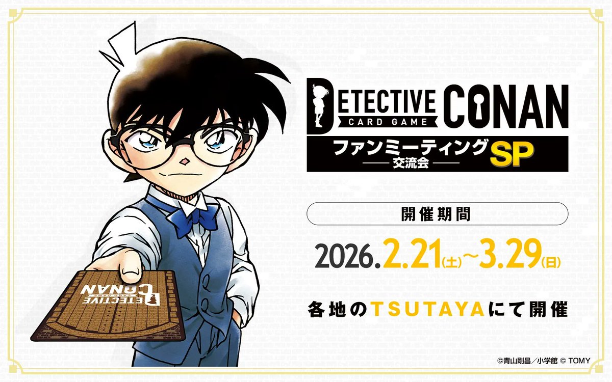 Join the ‘Fan Meeting SP’ event at TSUTAYA locations for a chance to win exclusive prizes and enjoy friendly matches of the Conan Card Game. A special version where you can enjoy matches without worrying about winning or losing. Don’t miss out!